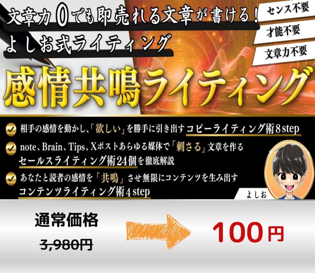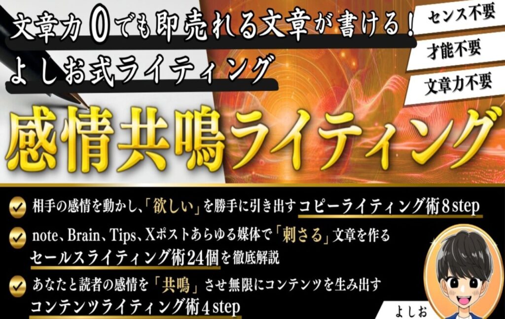 文章力0でも即売れる文章が書ける!よしお式ライティング『感情共鳴ライティング』